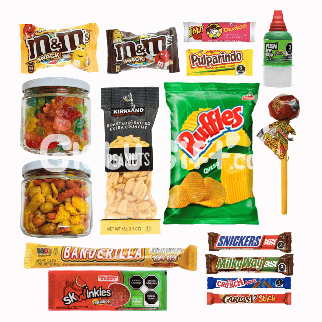 Dulces y botanas puede variar según existencias.